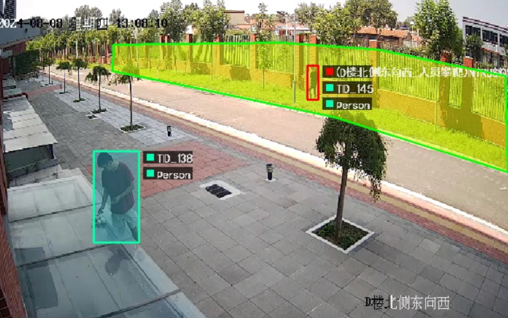 围墙因学生翻越外出或是外部人员翻入都是有较大安全隐患,通过复用学校围墙区域摄像头对围墙区域进行翻越智能监控。